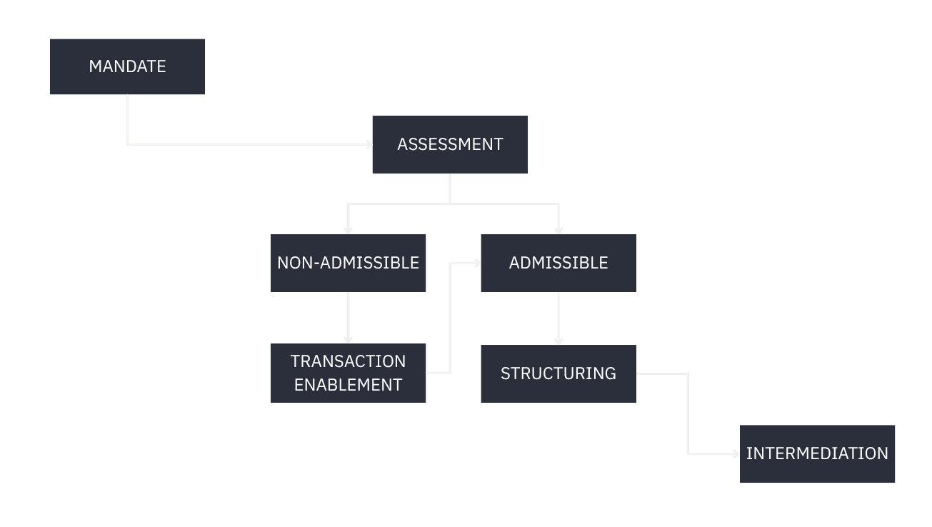 Admissible mandates proceed to structuring and intermediation.